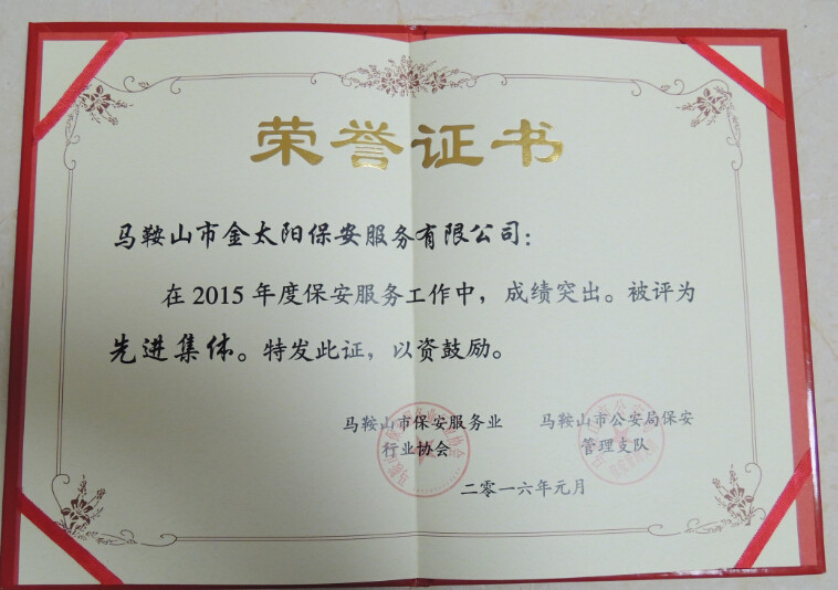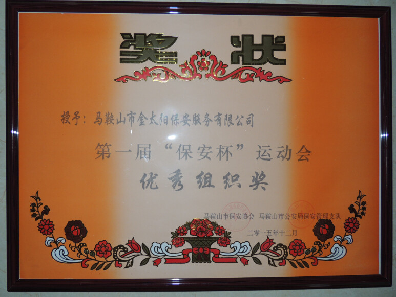 會(huì)上,我金太陽(yáng)保安服務(wù)公司總經(jīng)理朱曉軍代表2015年度保安服務(wù)業(yè)先進(jìn)集體上臺(tái)發(fā)言。會(huì)議中強(qiáng)調(diào),保安工作是平凡而艱苦的,既然我們選擇了保安工作,就深知,干一行,愛(ài)一行,專(zhuān)一行的道理。嚴(yán)格把關(guān)保安持證上崗,我公司員工會(huì)齊心協(xié)力把保安工作做好,不辜負(fù)領(lǐng)導(dǎo)對(duì)我們殷切的希望。此次我公司受到的先進(jìn)集體的表彰和先進(jìn)個(gè)人榮譽(yù)證書(shū)。